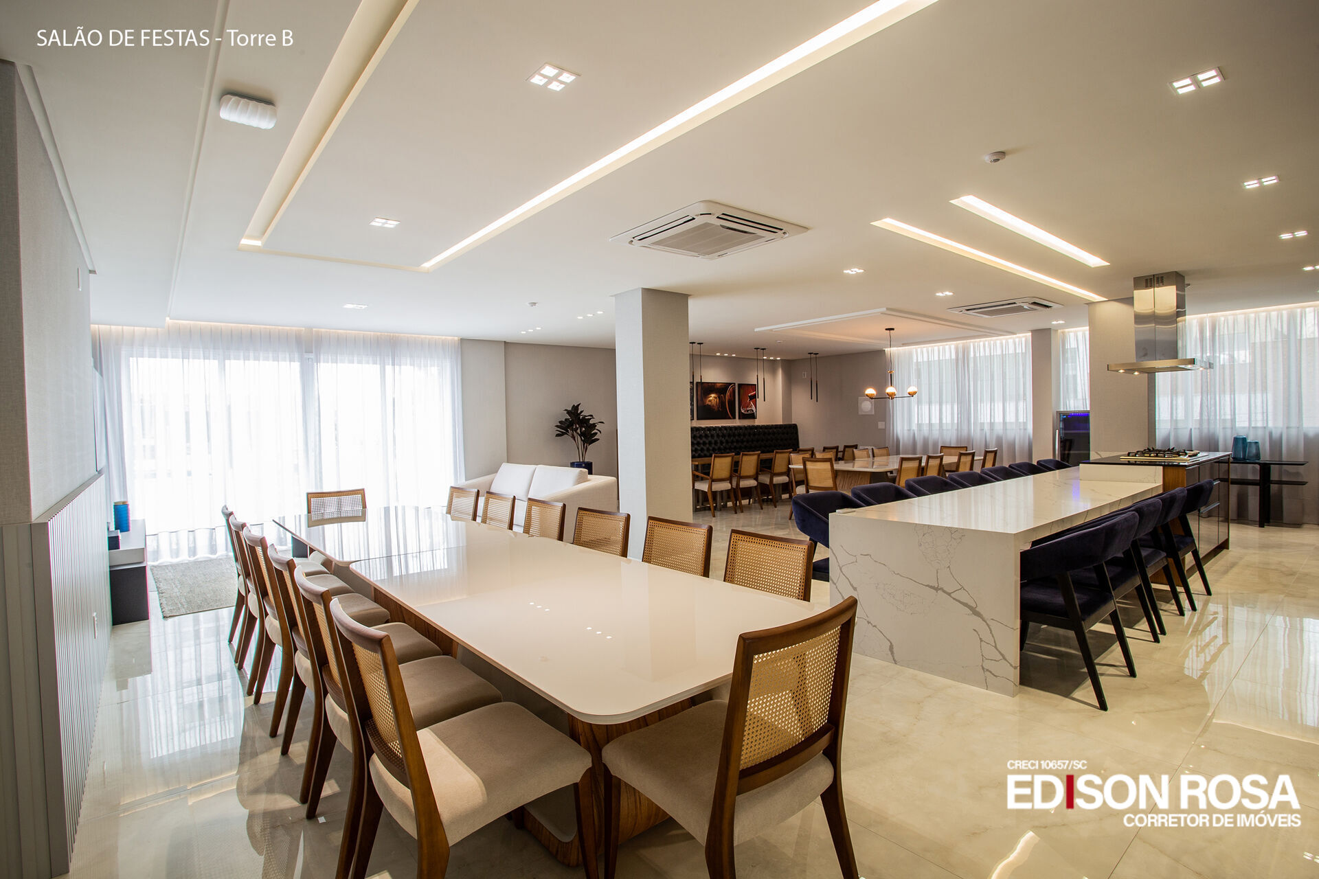 Apartamento Alto Padrão com 3 quartos sendo 1 suite com 2 vagas, área privativa 101,70m², Persianas com acionamento elétrico nas suítes e dormitórios, Ampla sala de estar e jantar, Todos os ambientes com teto rebaixado em gesso, Piso em porcelanato, Cozinha integrada com a sala, Infraestrutura para ar-condicionado do tipo split, Infraestrutura para instalação de água quente com aquecedor de passagem, Churrasqueira a carvão e bancada de apoio com pia e garagem.